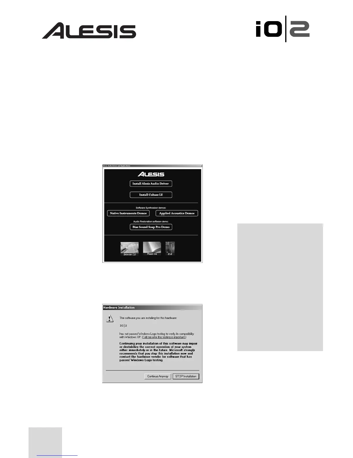 Per installare l’IO|2 su Windows XP, inserire semplicemente il CD-ROM Alesis