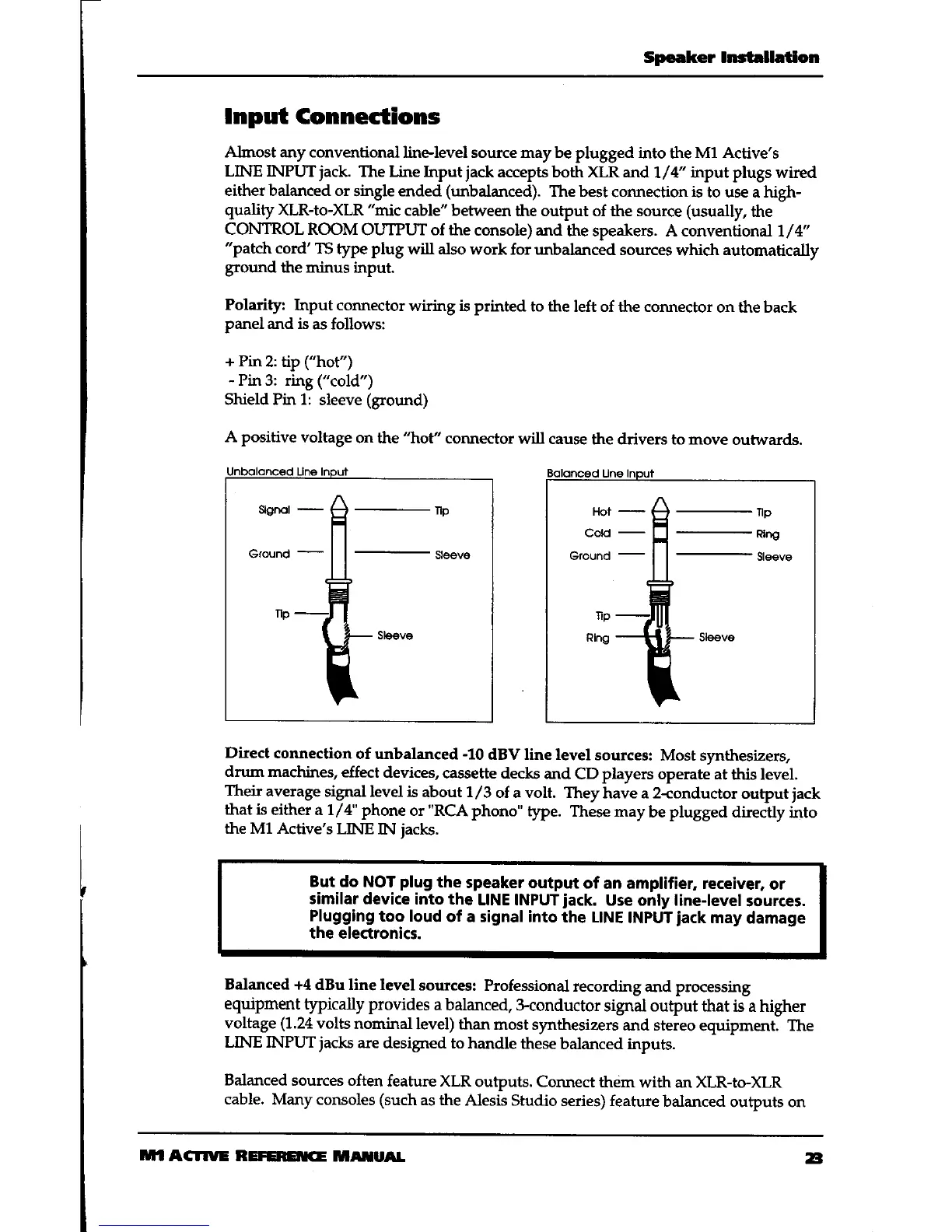 Alesis M1 ACTIVE - Input Connection Types