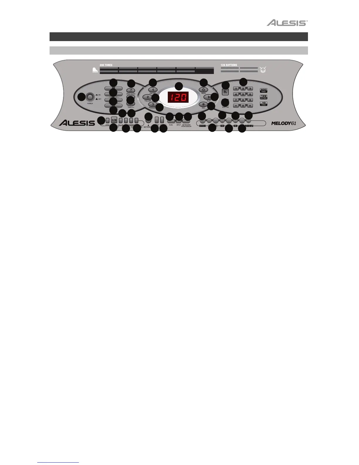 17. Números: Utilice estos botones para seleccionar un instrumento, ritmo, canción o