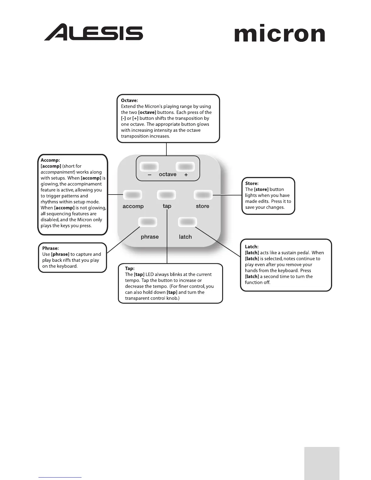 Alesis Micron - The Performance Buttons; Octave; Accomp; Phrase