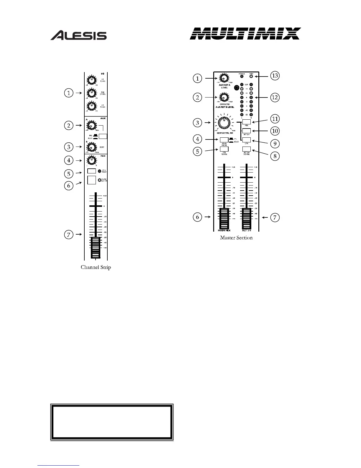 2. EFFECTS/AUX RET B: Steuert den Signalpegel