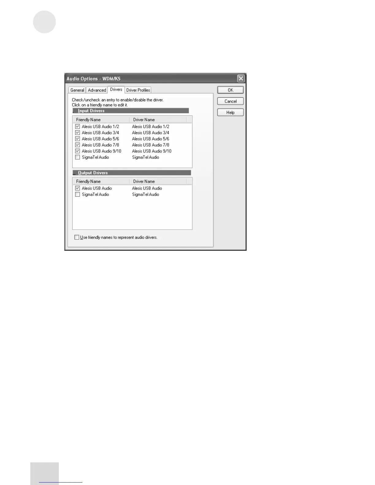 4. Move to the “Drivers” tab. Select each input pair and also on