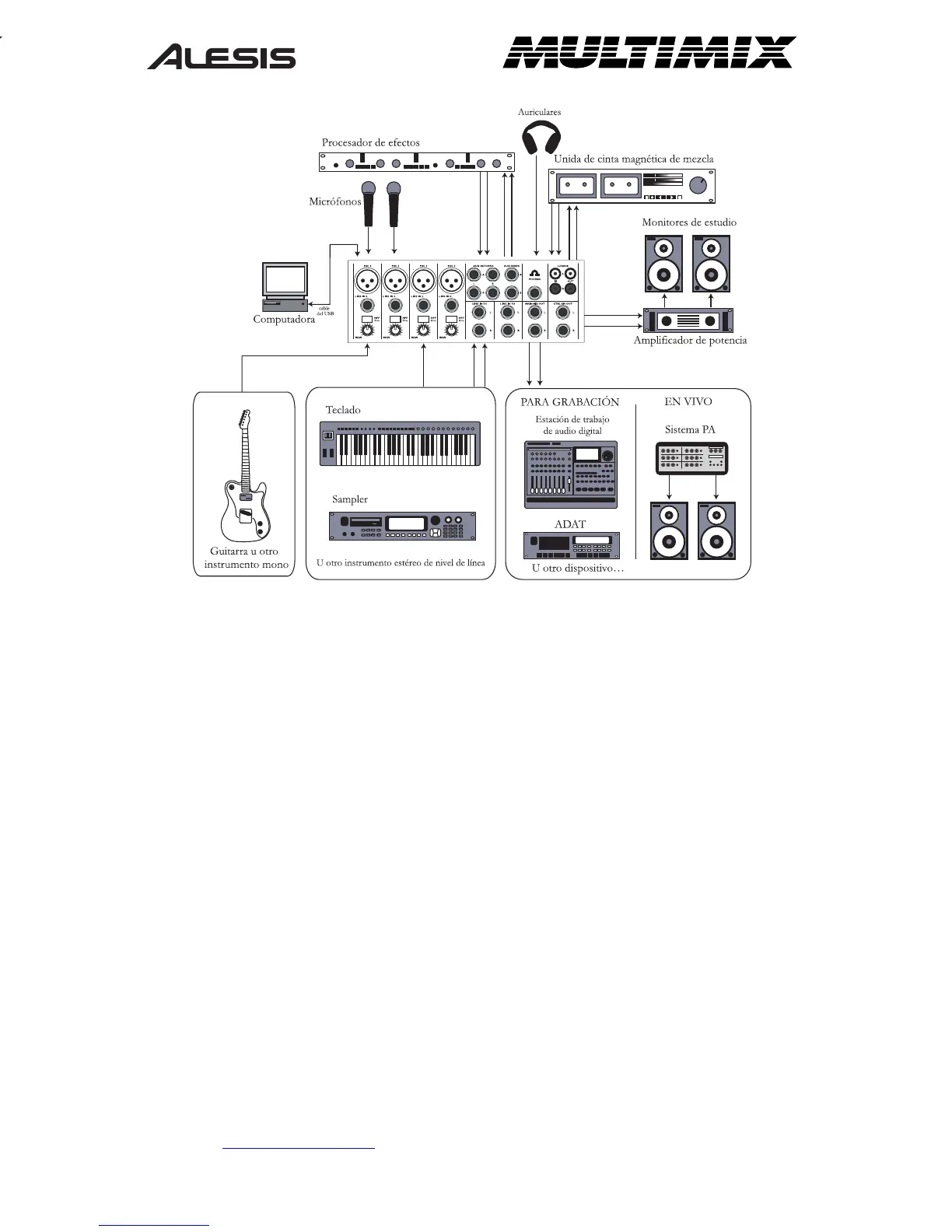 7. Conecte las salidas a los amplificadores de alimentación, unidades de cinta magnética, y/o fuentes