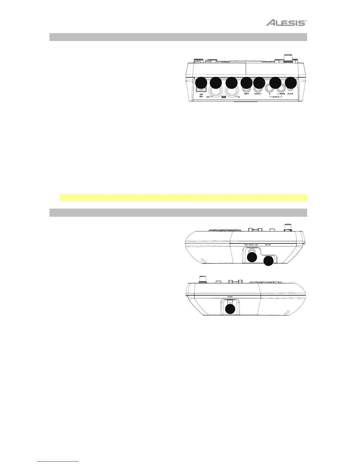 3. Tom 4 Input: Use a standard 1/4" TRS cable to connect this input to an optional drum