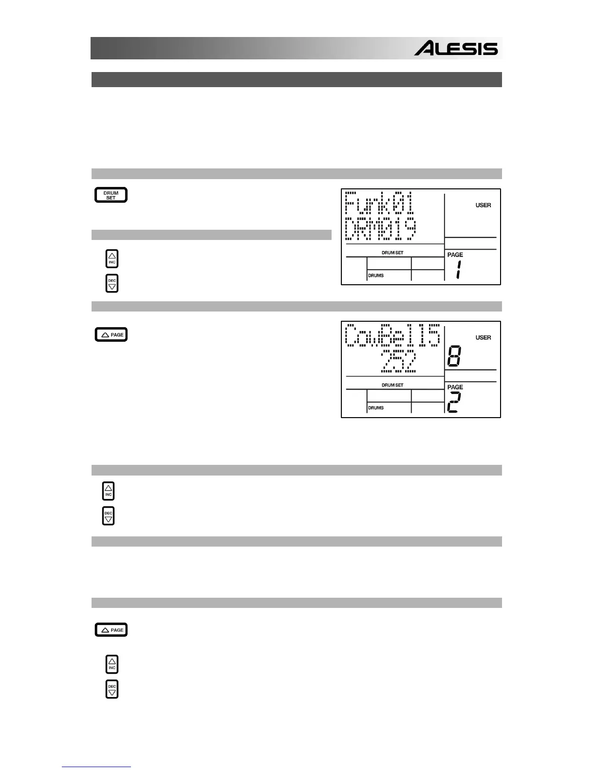 Estando en el modo Drum Set, pulse el botón PAGE hacia arriba para ver otras páginas de
