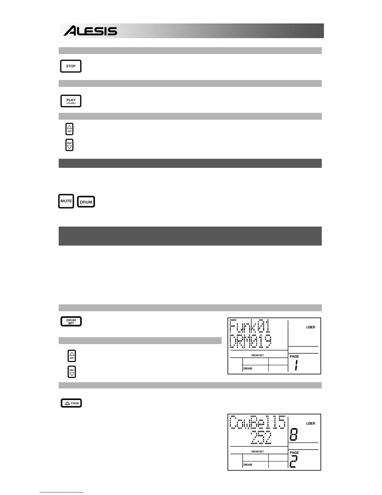 la touche MUTE enfoncée puis en appuyant sur DRUM. Pour remettre le son de la