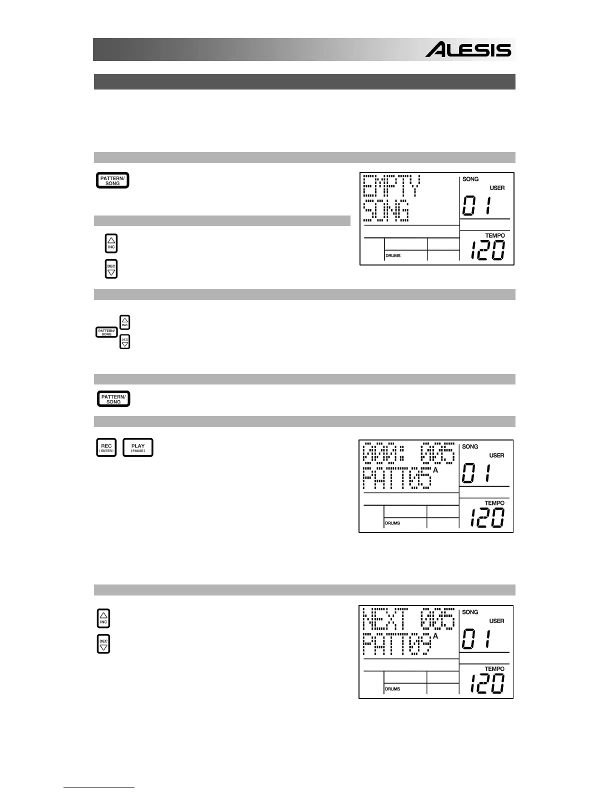 PATTERN / SONG fino a quando a display non