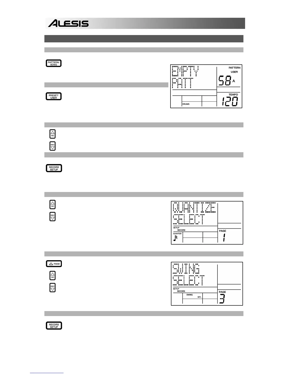 Menü ermöglicht die Anpassung der Aufnahmeeinstellungen, wie Quantisierung und Swing,