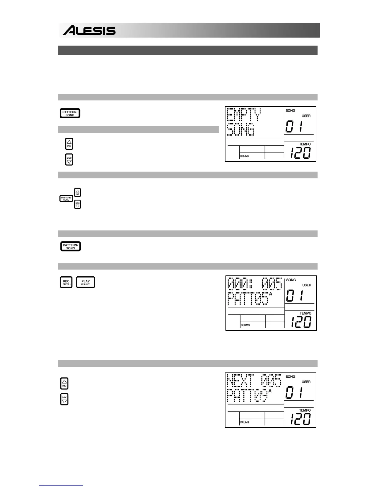 (drücken Sie SONG / PATTERN, damit PATTERN im Display steht). Im Moment wollen wir
