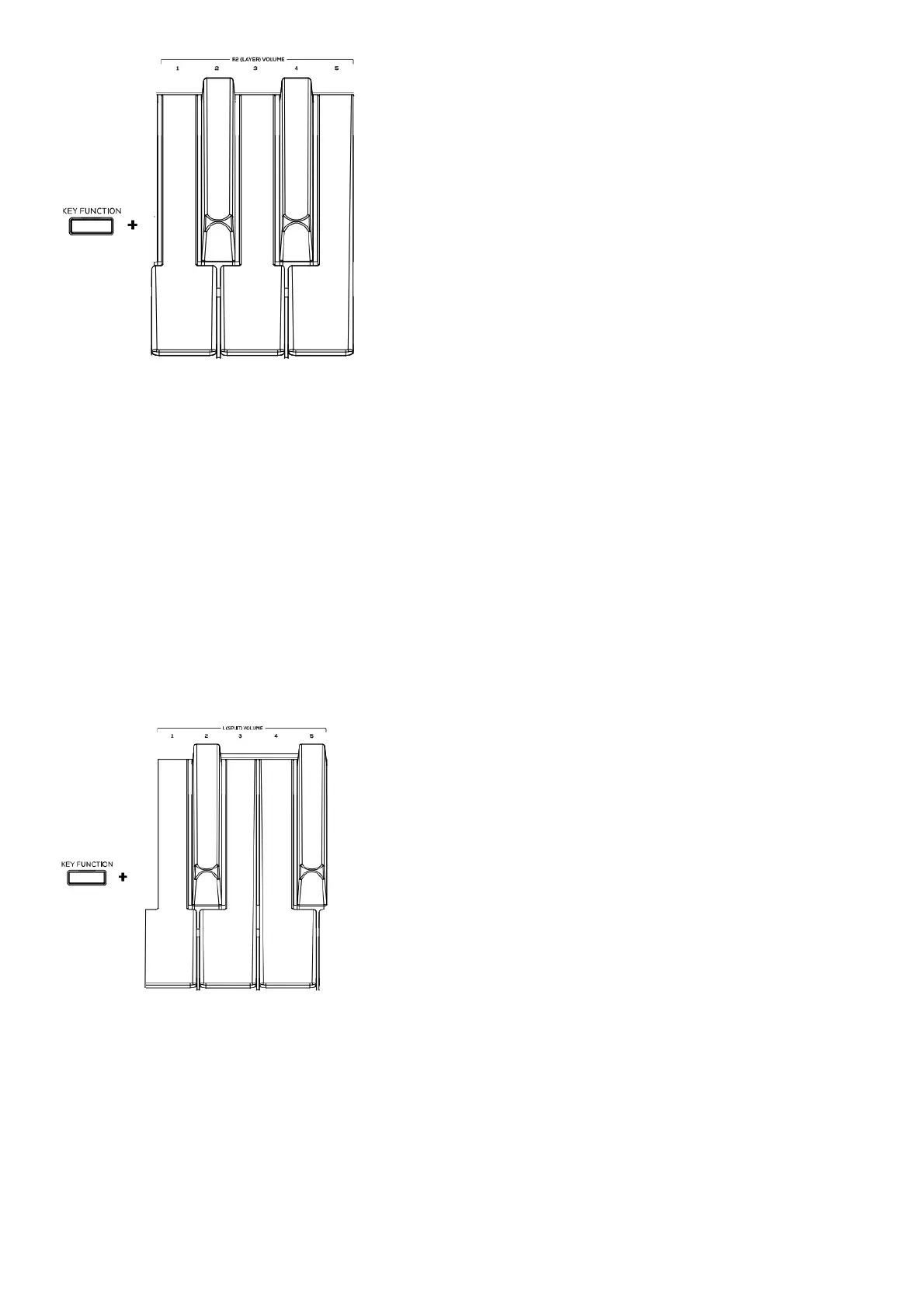 4. To change the volume of the split voice, press and hold Key Function, then press a key from A6 to C#6. The