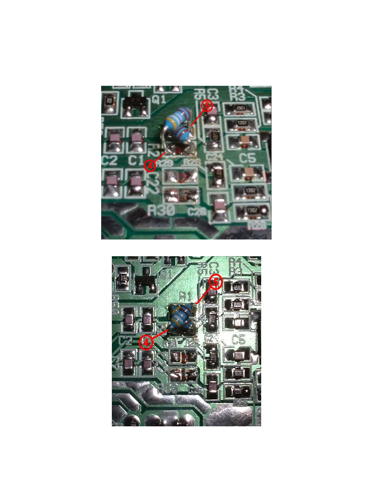 4) Solder one leg of another 4.99K 1/8W resistor to the left pad of R2.