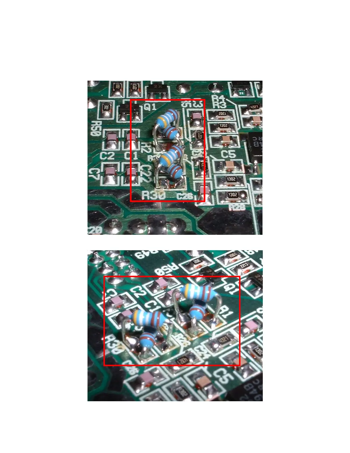 6) Repeat steps 2-5 on the component pads for R29 and R30. Refer to Figures 4a and 4b