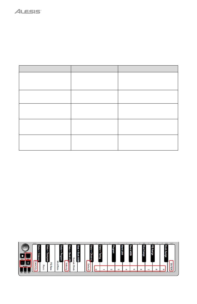 2. Press the “VELOCITY” key (G, 5th white key from the left).
