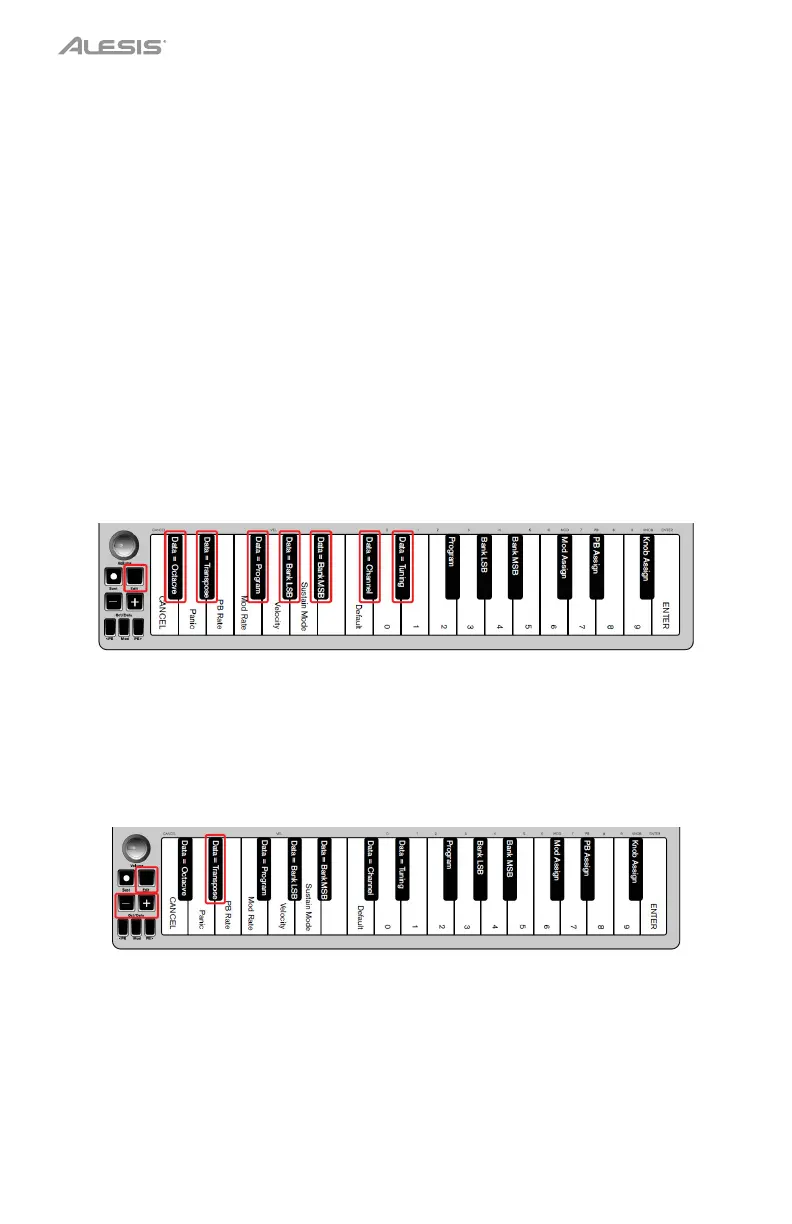 either direction. The Data=Octave assignment is retained when the keyboard is turned off.