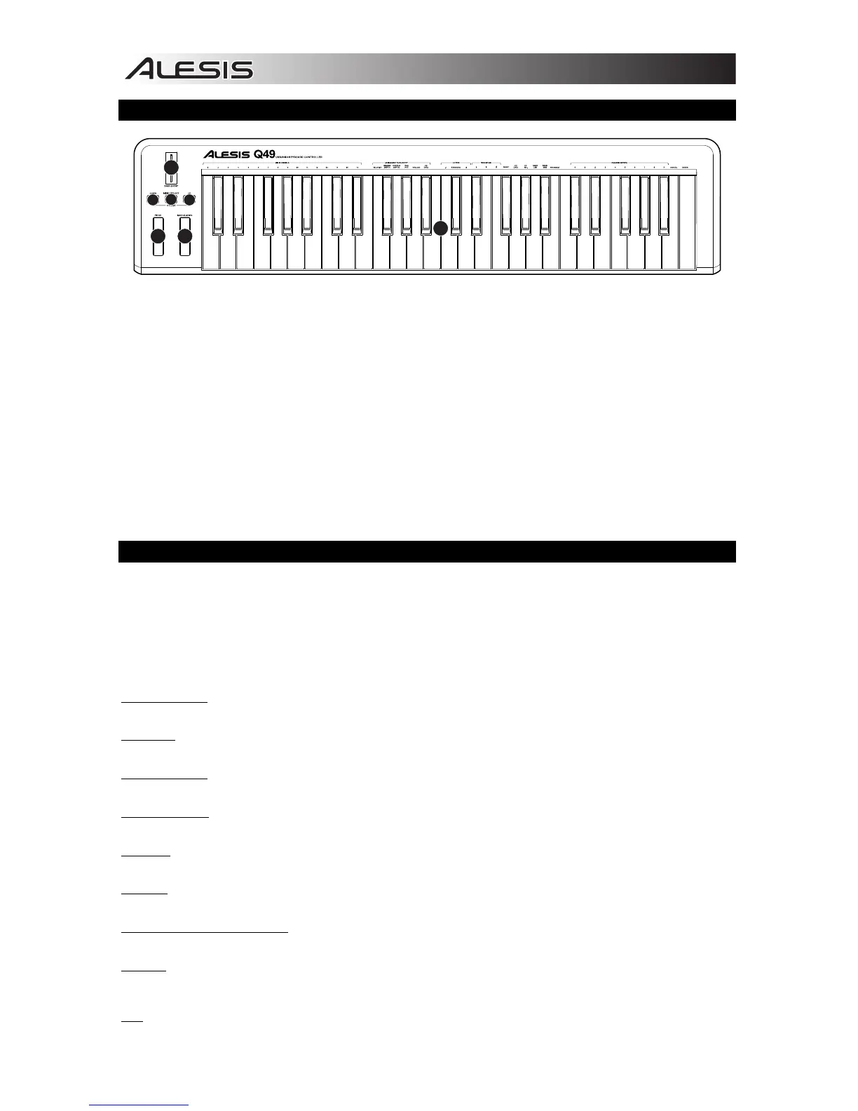 MIDI CHANNELS – Ces touches permettent de sélectionner le canal MIDI (1 à 16) sur lequel le Q49 transmettra les messages