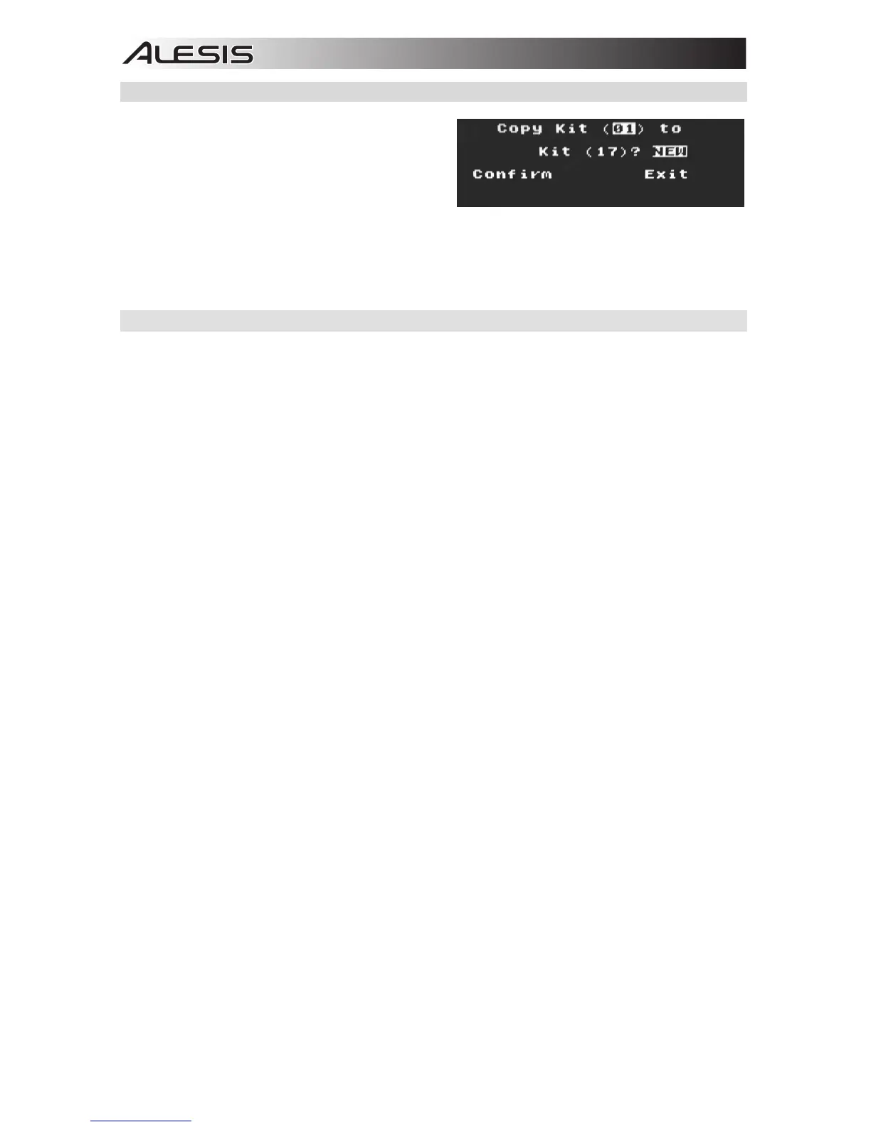 7. To exit the COPY KIT submenu, press the Cursor Down until Exit is highlighted, and then press the Cursor