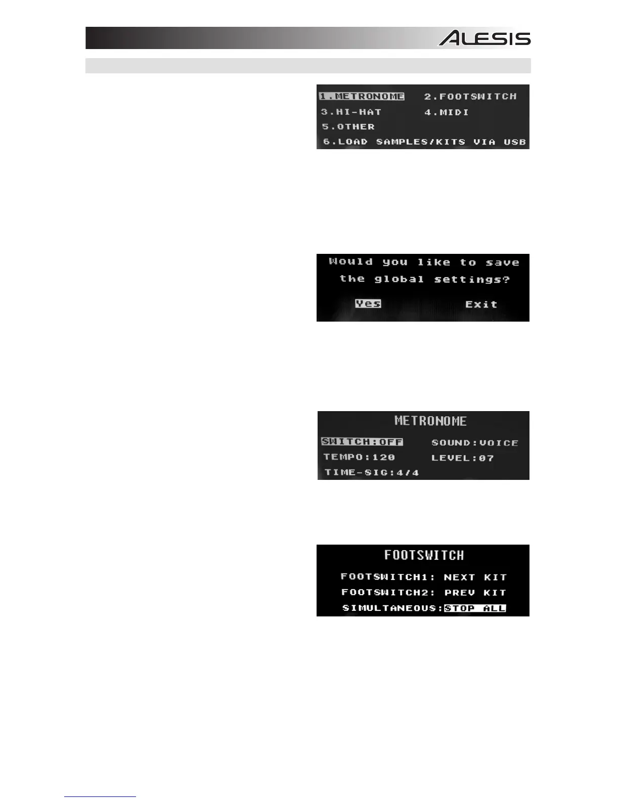 3. Pulse el cursor derecho para entrar al submenú SAVE GLOBAL SETTINGS.