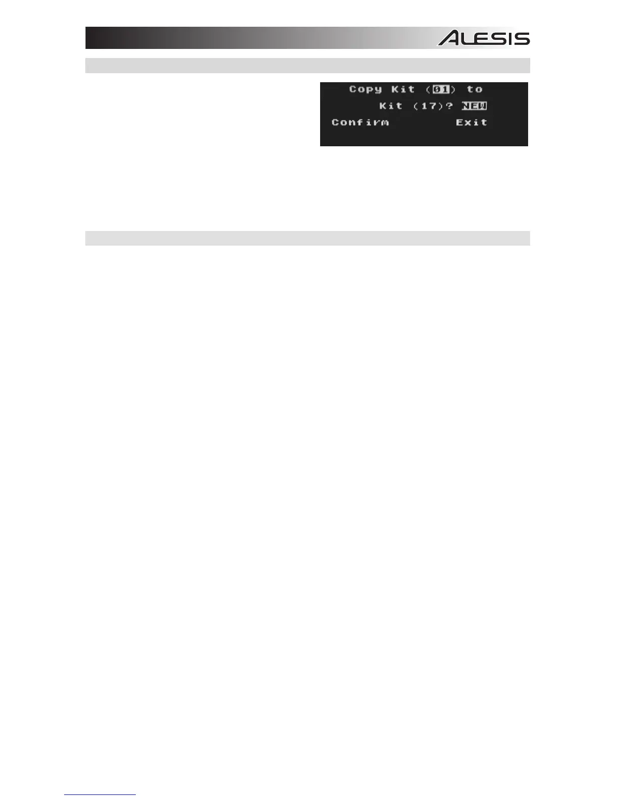 6. Pulse el cursor abajo para resaltar Confirm y después cursor derecho para copiar el kit.