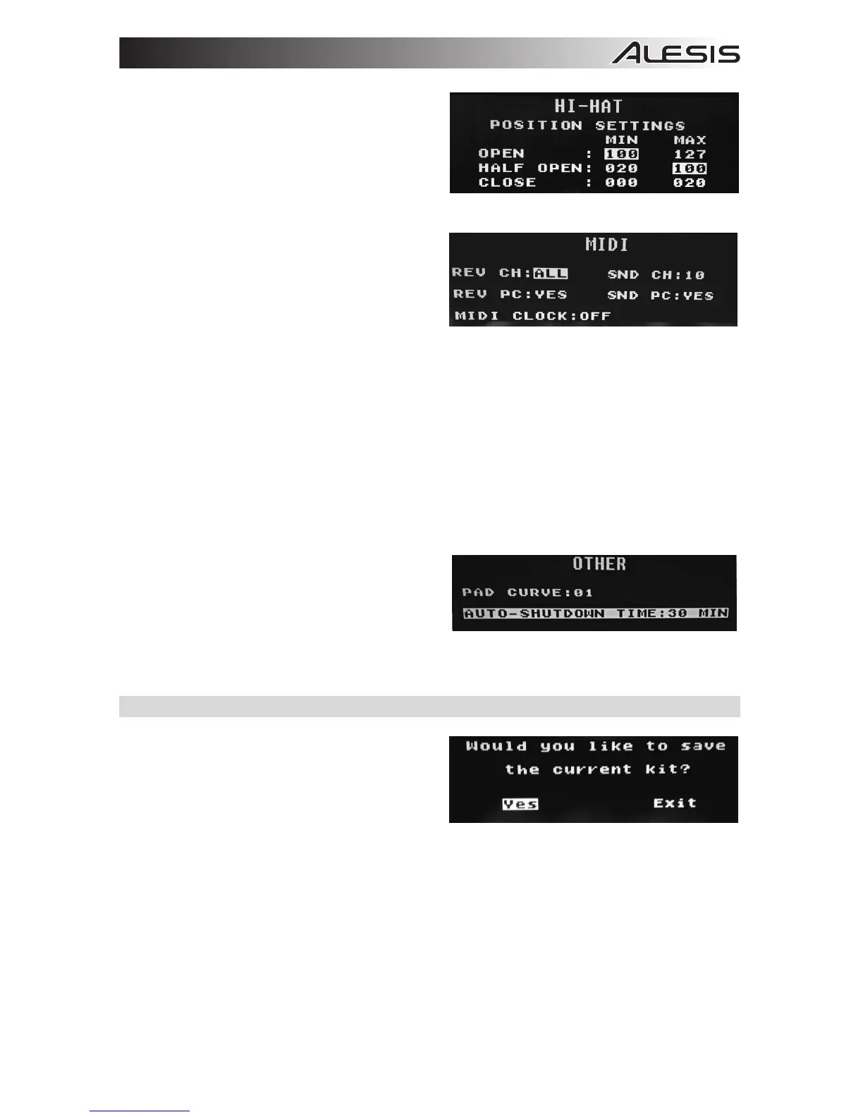 sur le canal de transmission MIDI (Send Channel) lorsqu’un kit est modifié. Les paramètres sont Yes (oui) et