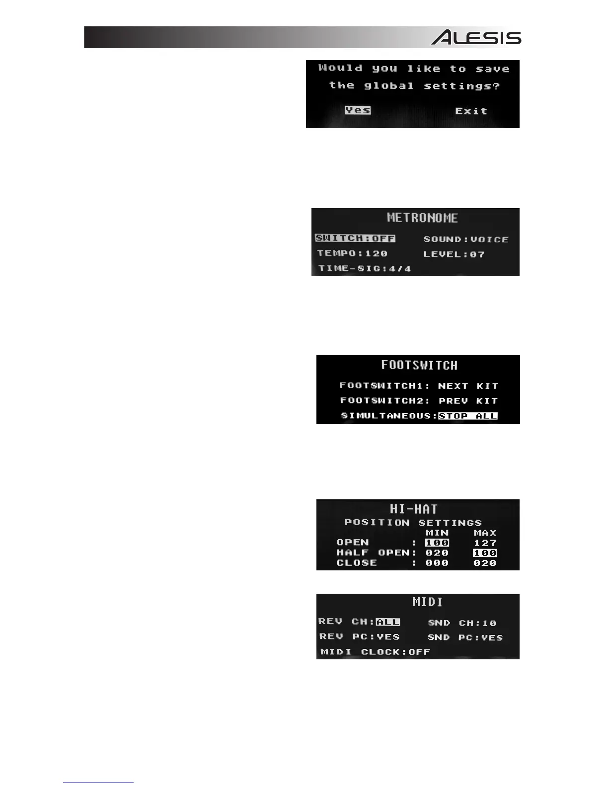 3. Premere il Cursore destro per entrare nel sottomenu SAVE GLOBAL SETTINGS.
