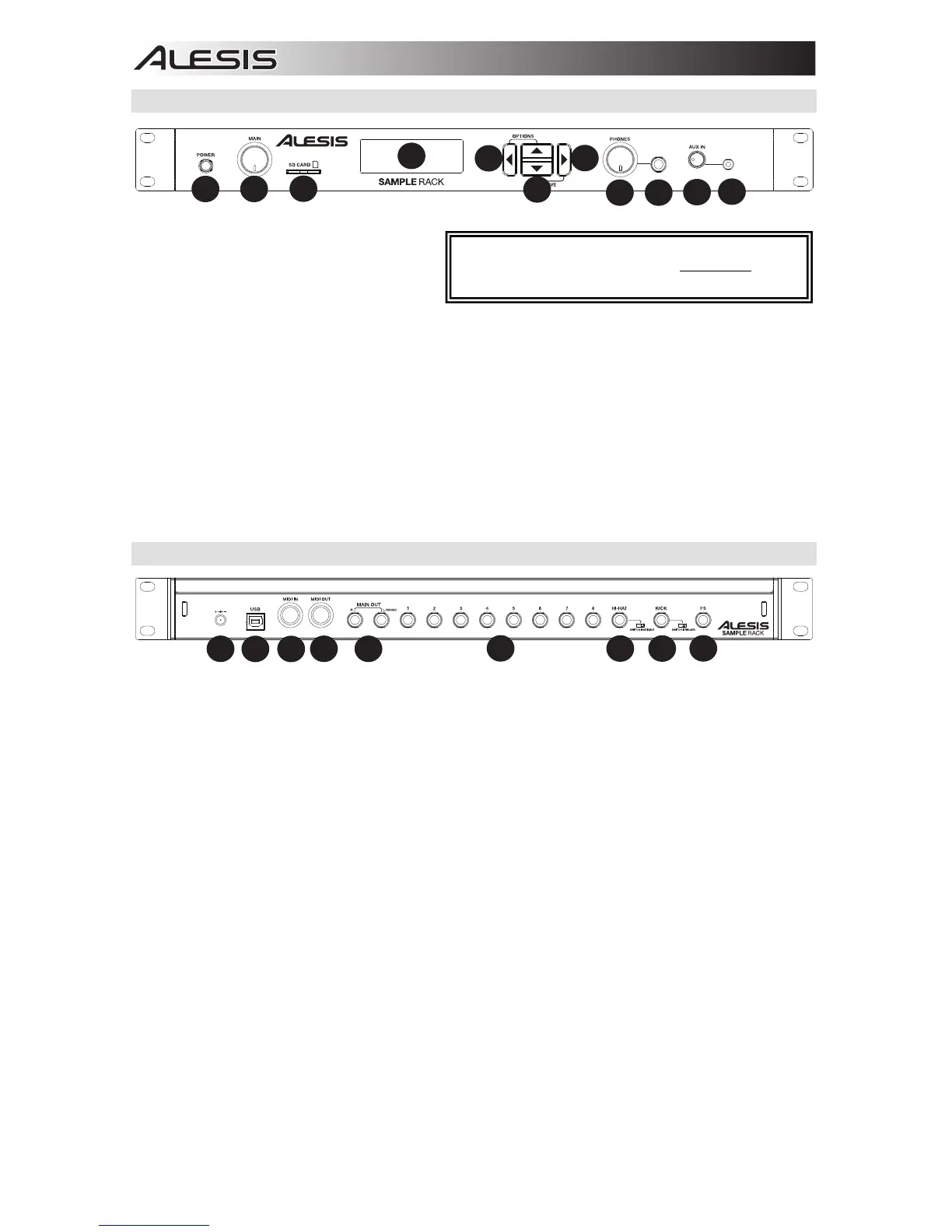 2. USB/MIDI-Anschluss - Verbinden Sie SampleRack mit einem Computer, um MIDI-Daten zu senden oder zu