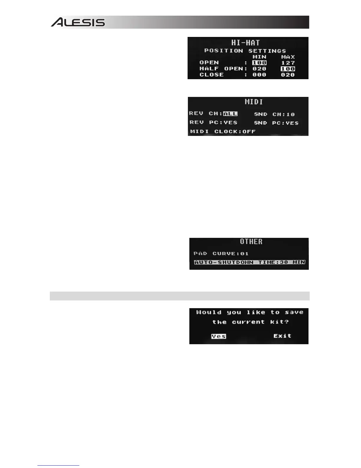 4. Drücken Sie Cursor Rechts, um in das Untermenü SAVE KIT zu gelangen.