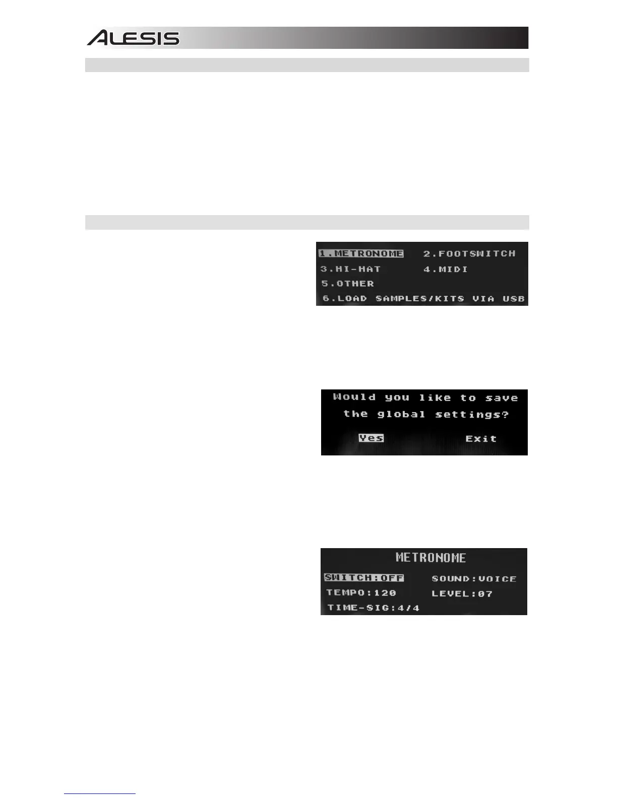 5. To exit the SAVE GLOBAL SETTINGS submenu, press the Cursor Down until Exit is highlighted, and then