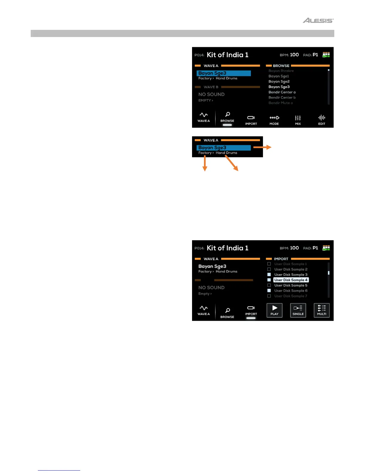Press the F3–Import button to import WAV files from a USB