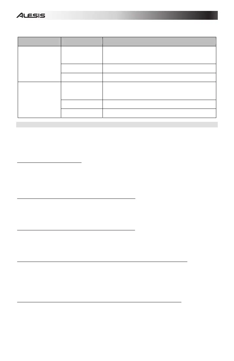 plages d’octave différentes. Un message de volume par défaut sera envoyé lorsque vous appuyez sur la touche