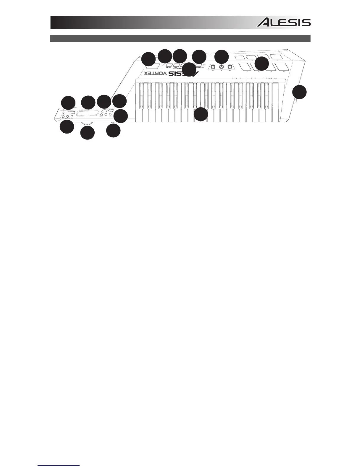 9. Keyboard - Velocity-Tasten mit Aftertouch für das Senden von MIDI-Noten. Mit den Tasten können Sie Werte