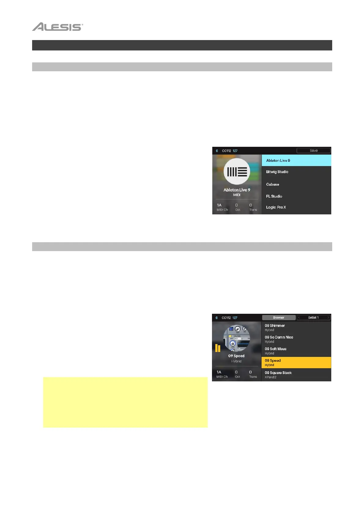 2. Use the Cursor Buttons to select the DAW Preset Browser