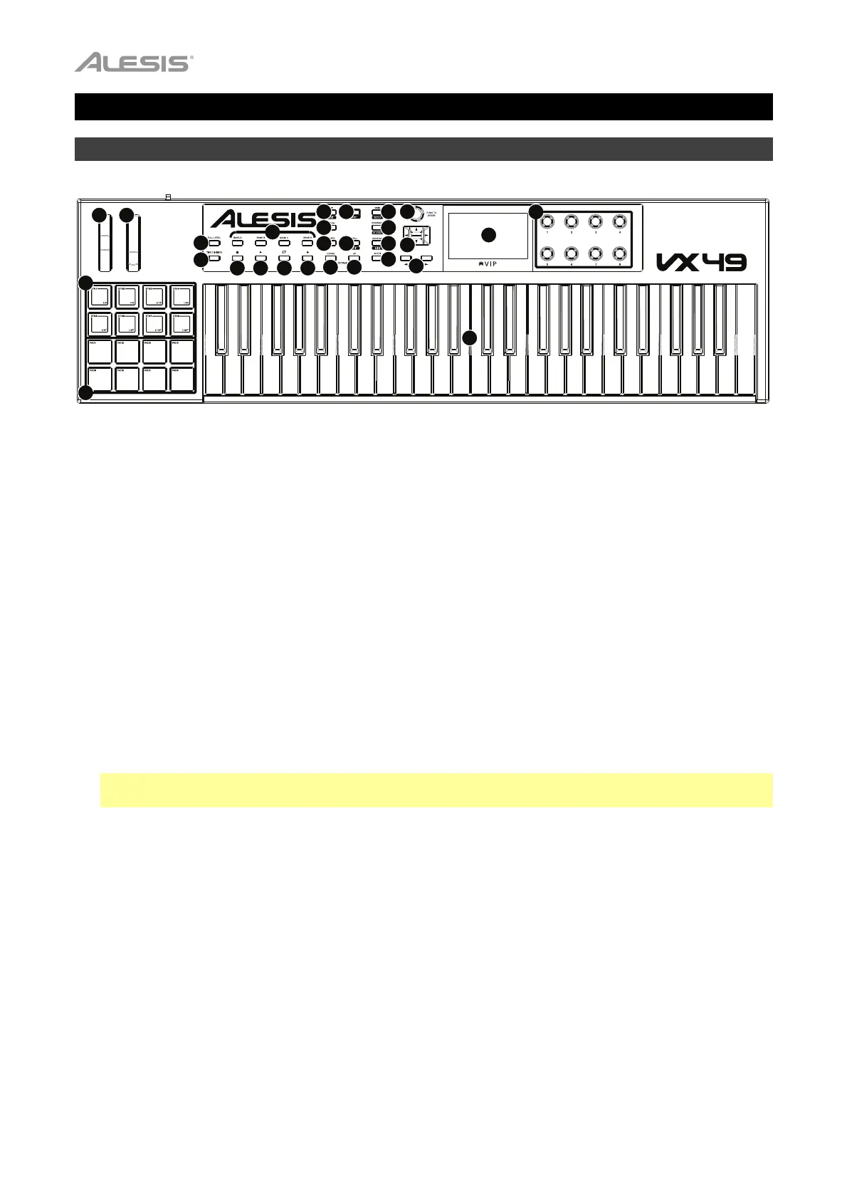1. Keyboard: This 49-note keyboard is velocity-sensitive and, in conjunction with the Octave Up/Down