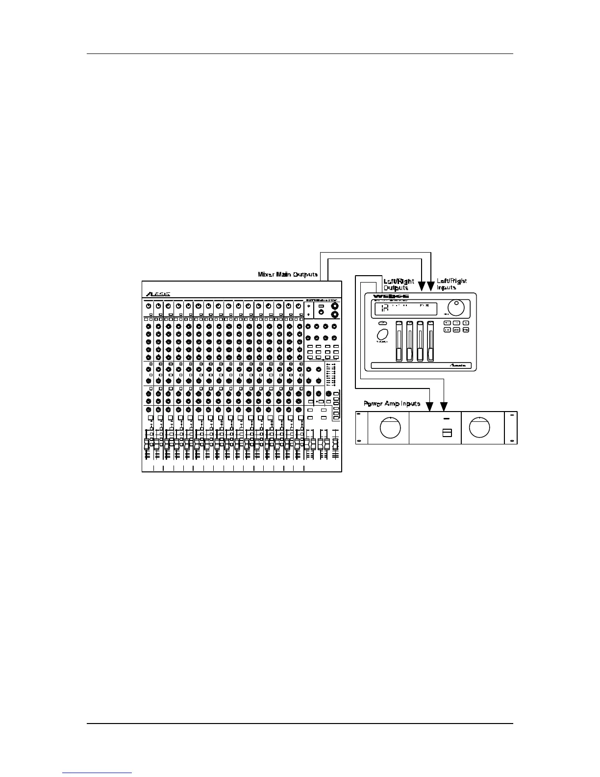between the mixer’s outputs and the amplifier’s or tape machine’s inputs. This is