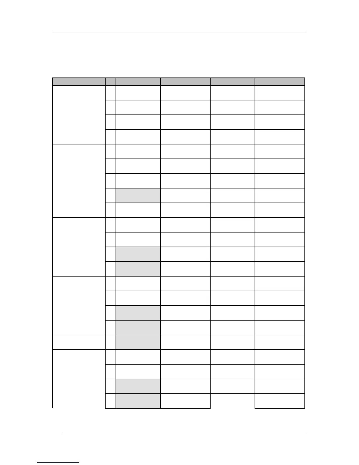 The following chart lists the parameters found on each page of each Configuration.