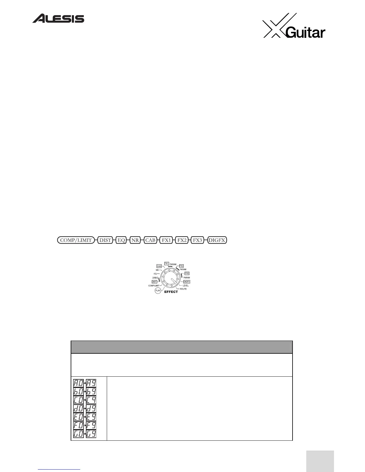 d’activation (Play). Lorsque vous modifiez un effet, le témoin DEL d’édition (EDITED