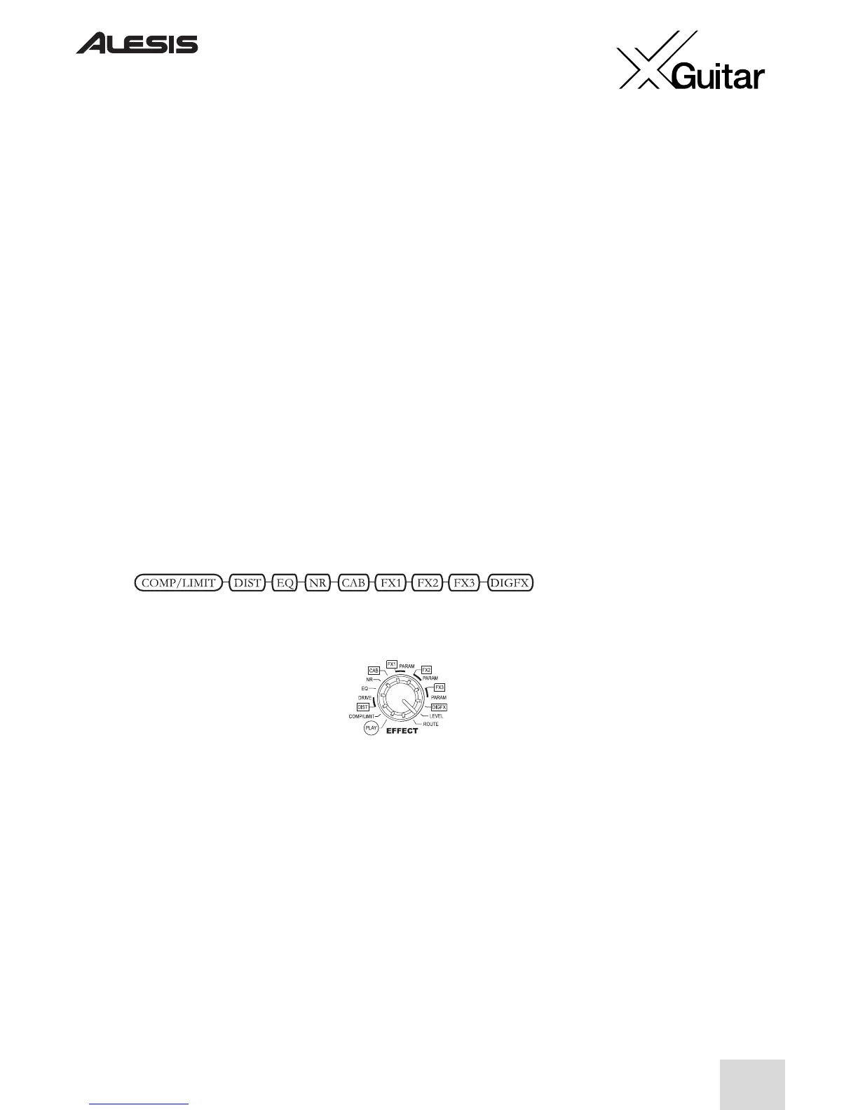 beschrieben wird. Die X-Gitarre hat acht separate Effektmodule, wie unten angezeigt wird: