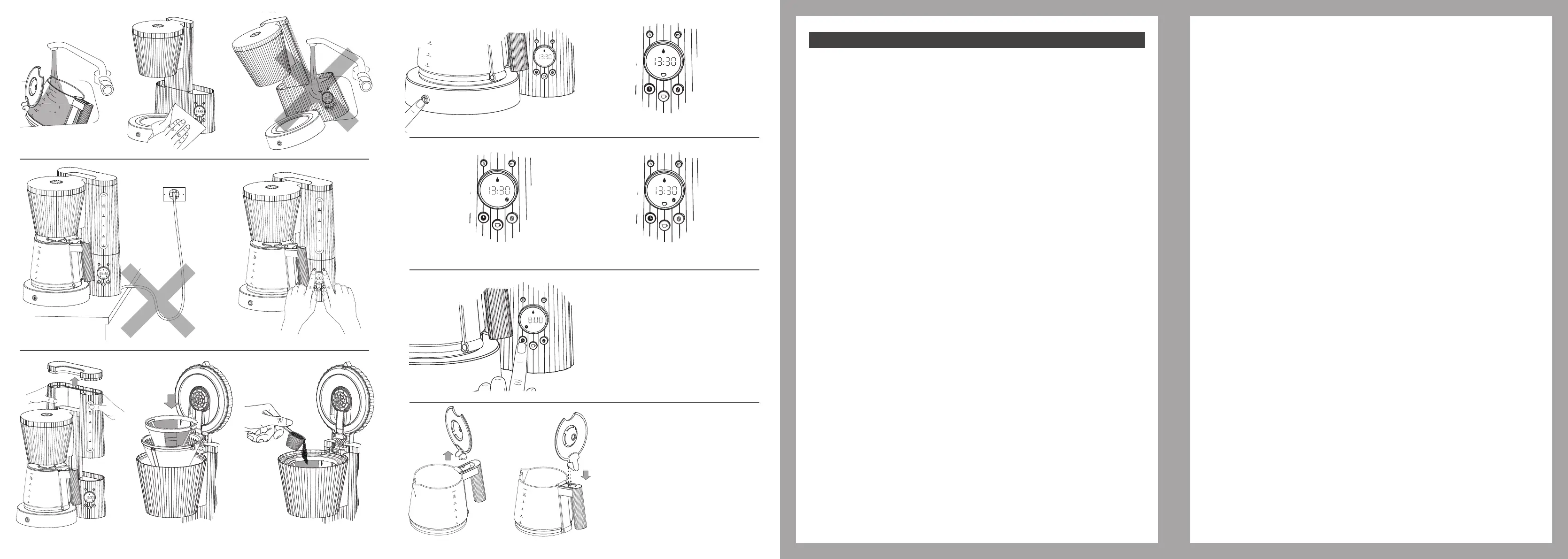 27. Mettere sempre il coperchio sul serbatoio, il portafiltro, il filtro e la caraffa in posizione
