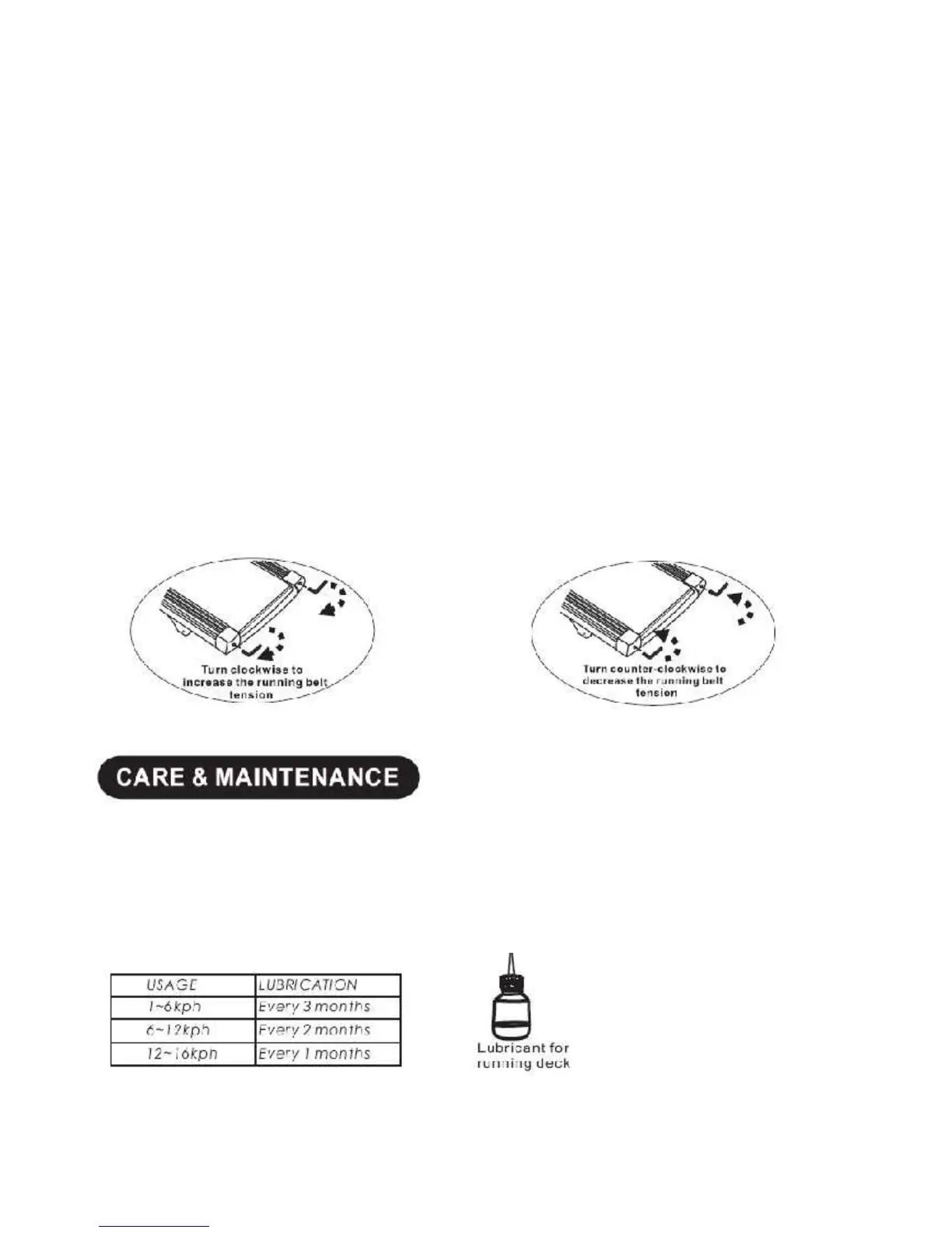 maintenance procedure will prevent premature wear of the running belt, running deck and drive motor system. The recommended