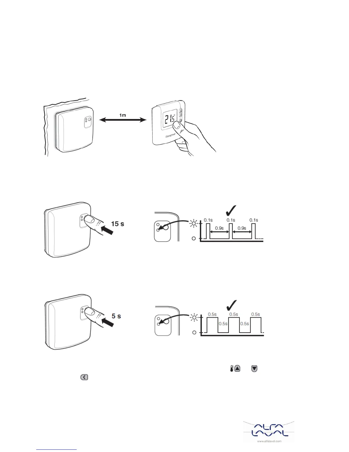 1. Houd tijdens de koppelprocedure ongeveer 1 m afstand tussen de kamerthermostaat en de relaiskast.