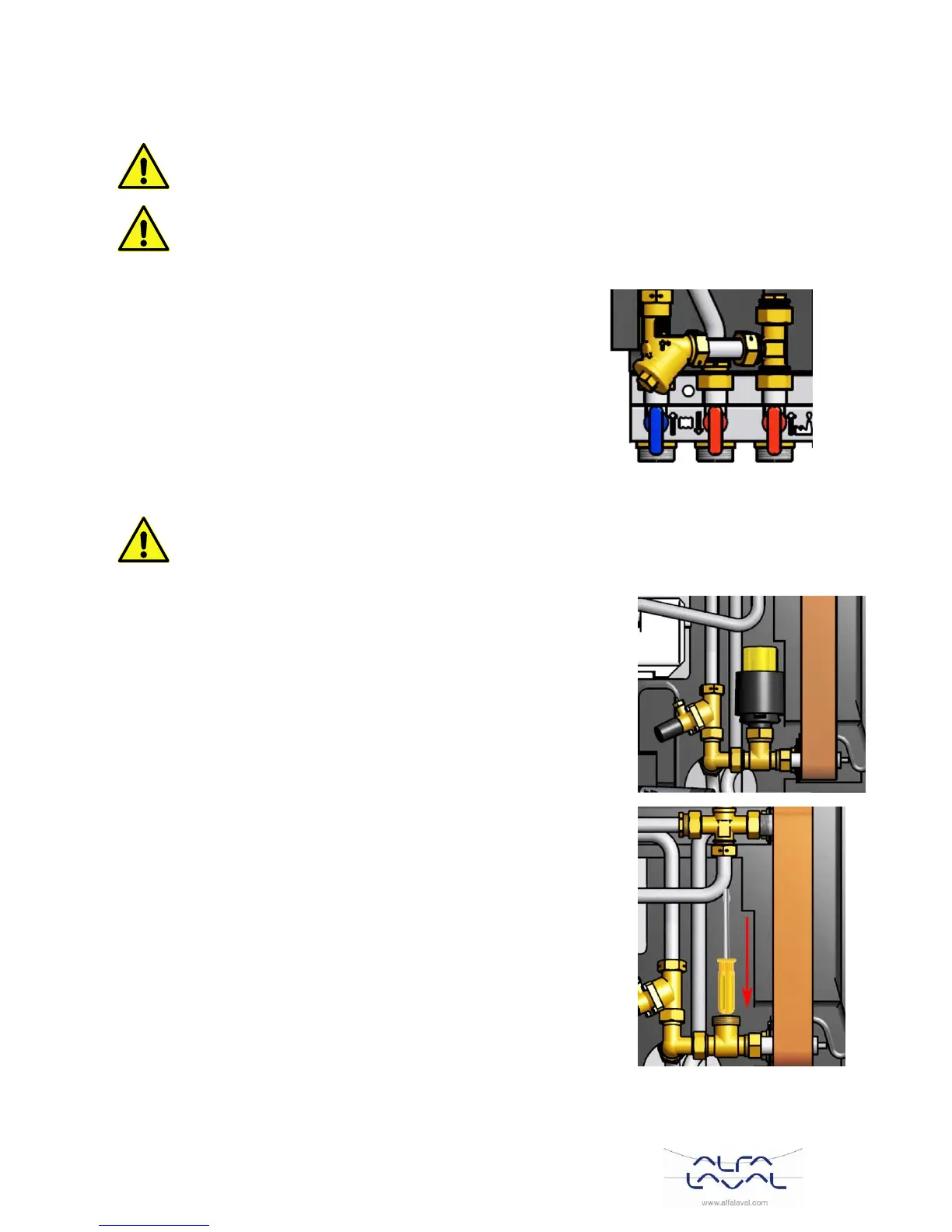 order to avoid pollutions in the system. Open up the valves slowly to avoid pressure surges.