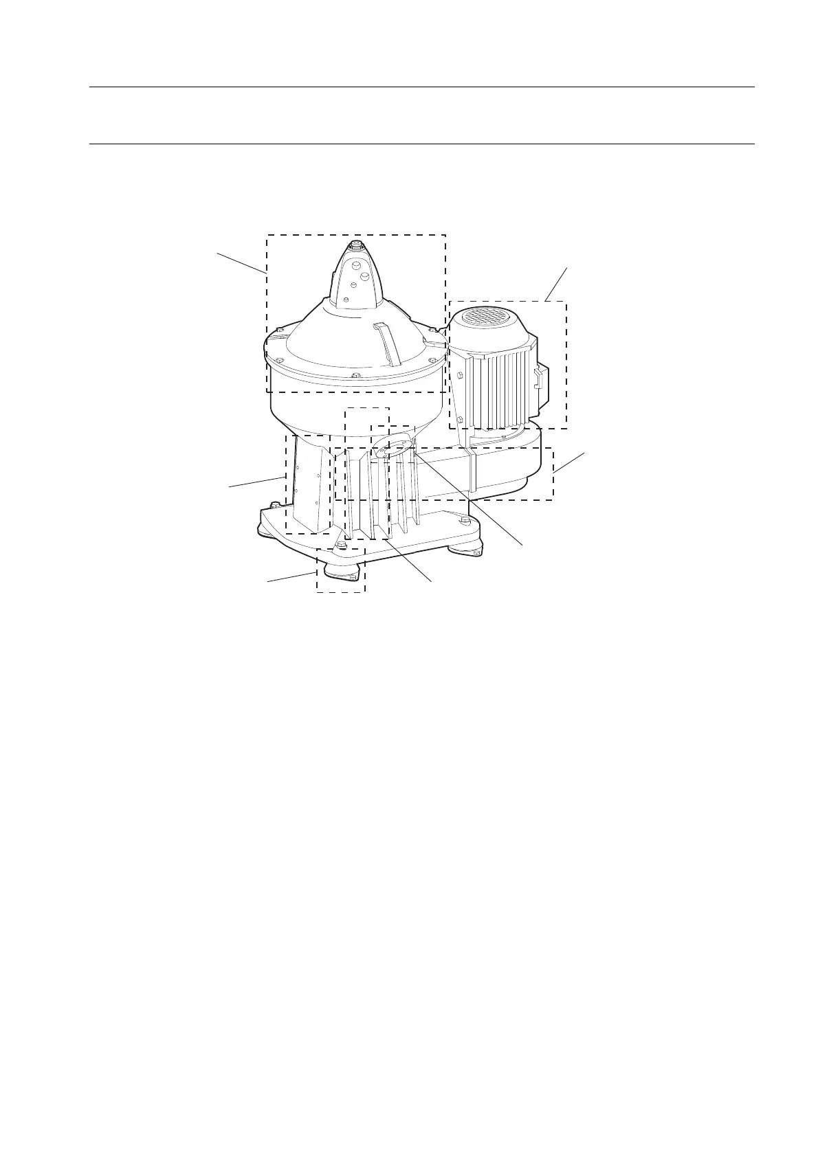 The rotating separator bowl is driven by a flat belt transmission with friction coupling.