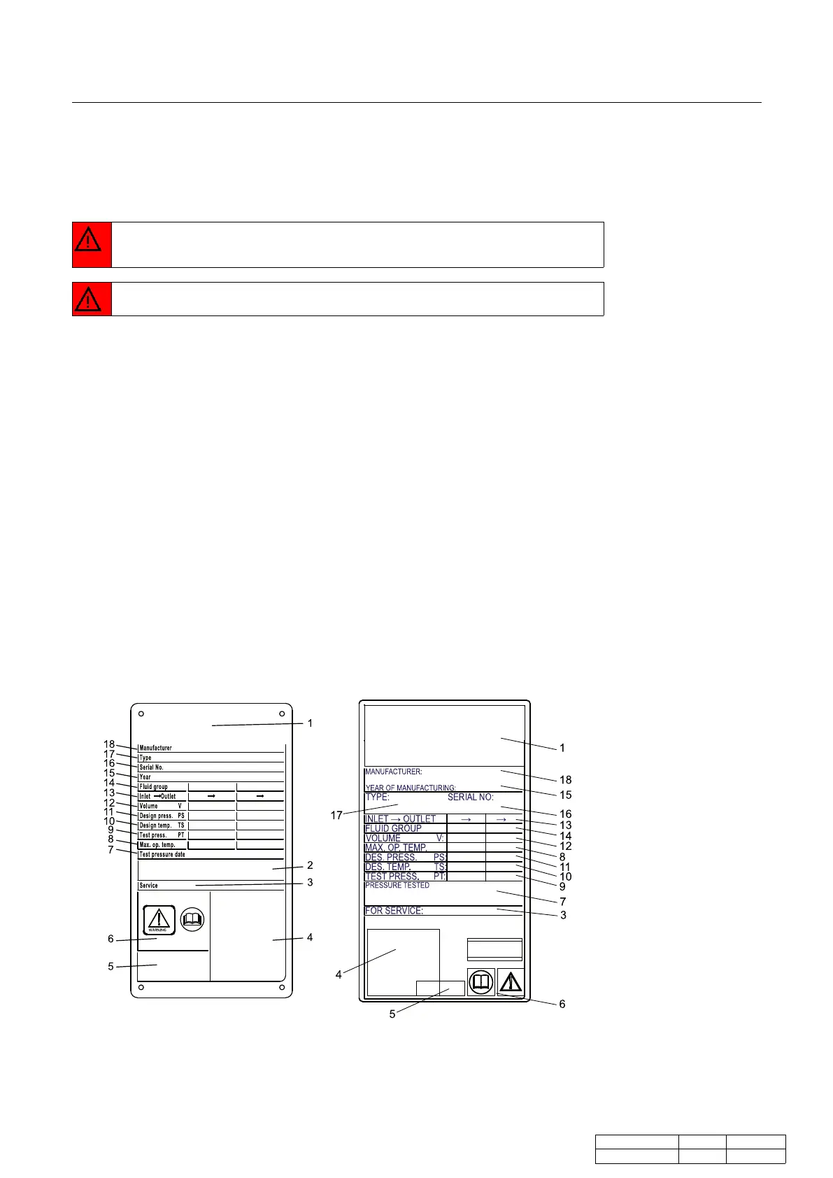Foreachunit,themechanicaldesignpressuresandtemperaturesaremarkedonthe