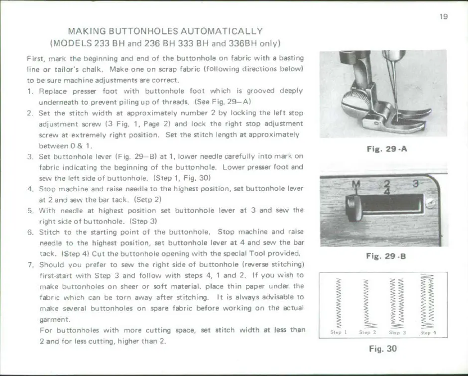 Alfa Network 233BH - AUTOMATIC BUTTONHOLE OPERATION; MAKING BUTTONHOLES AUTOMATICALLY (MODELS 233 BH, 236 BH, 333 BH, 336 BH)