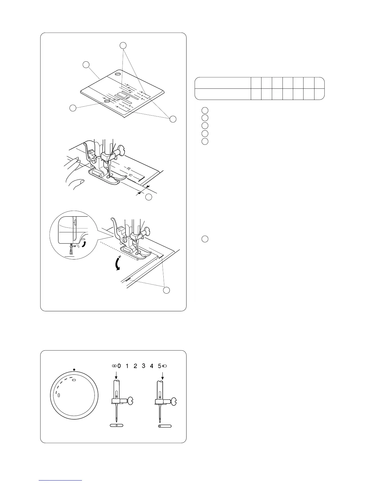 Nadelstellung und der Führungslinie an.