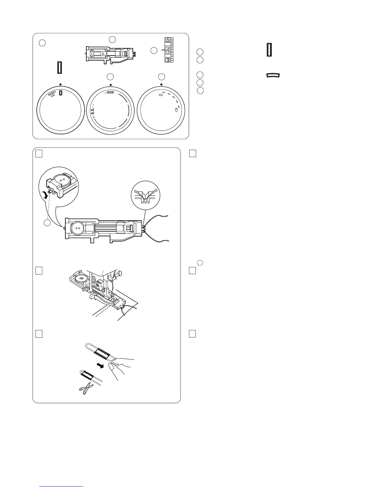 2 Pise o pedal suavemente e cosa a botoeira. Os lados da
