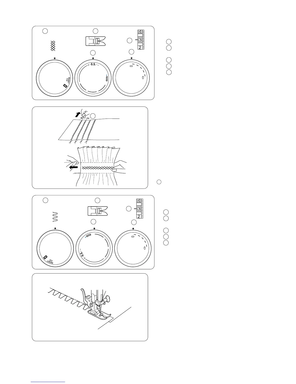 Cosa com um ponto decorativa entre os pontos do franzido.