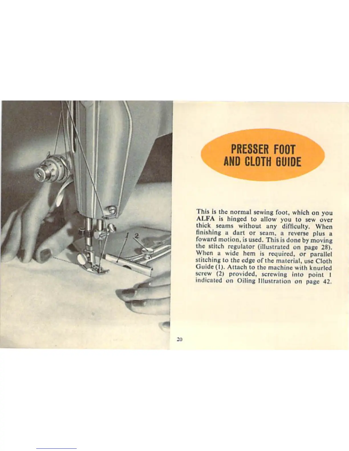 Alfa Network 50 - PRESSER FOOT AND CLOTH GUIDE; Using presser foot and cloth guide