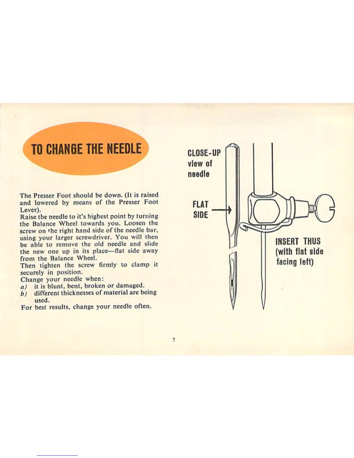 Alfa Network 50 - TO CHANGE THE NEEDLE; Instructions for changing sewing machine needles