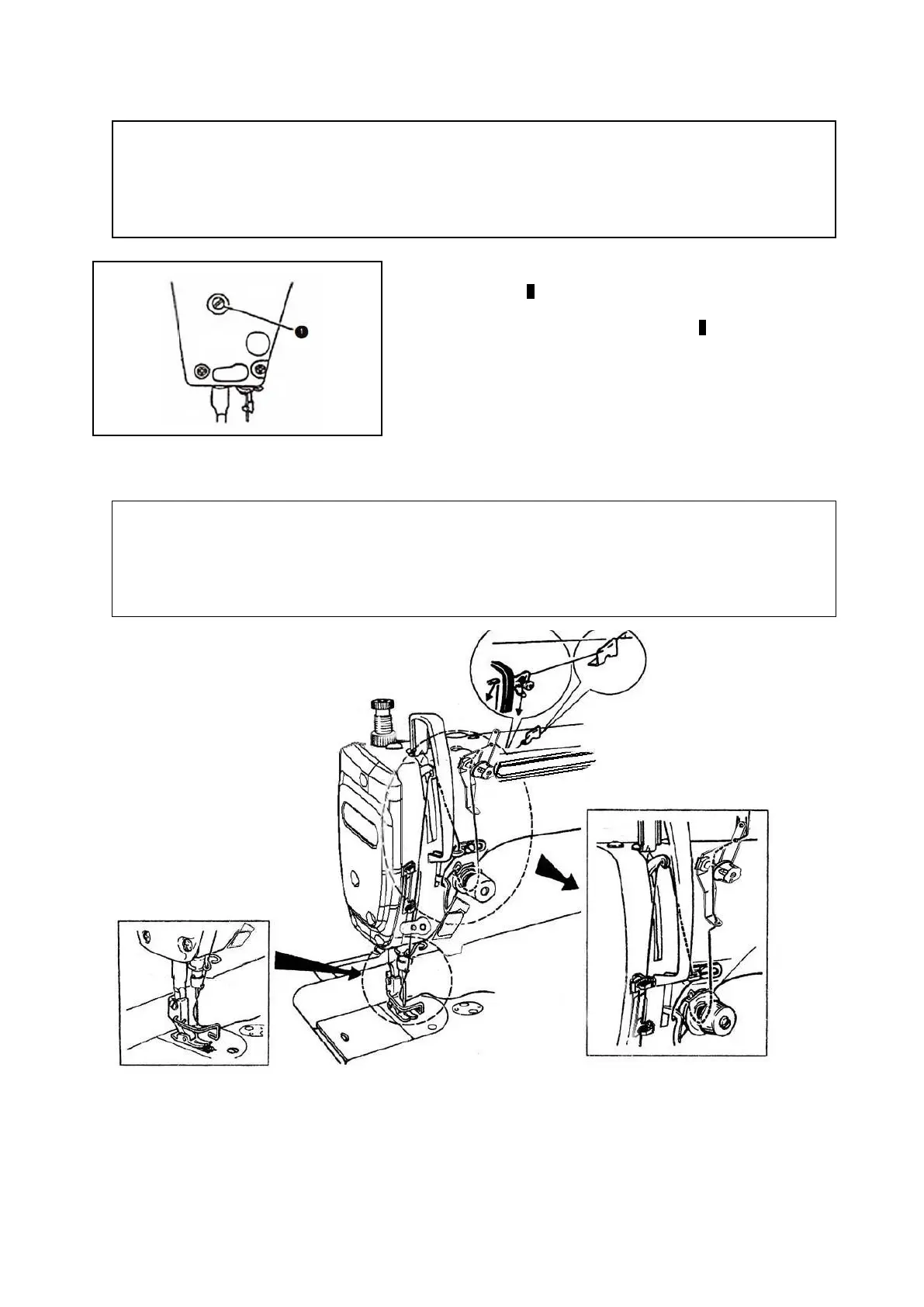 The needle bar should be at the highest position at its stroke; thread the machine in the order shown as above.
