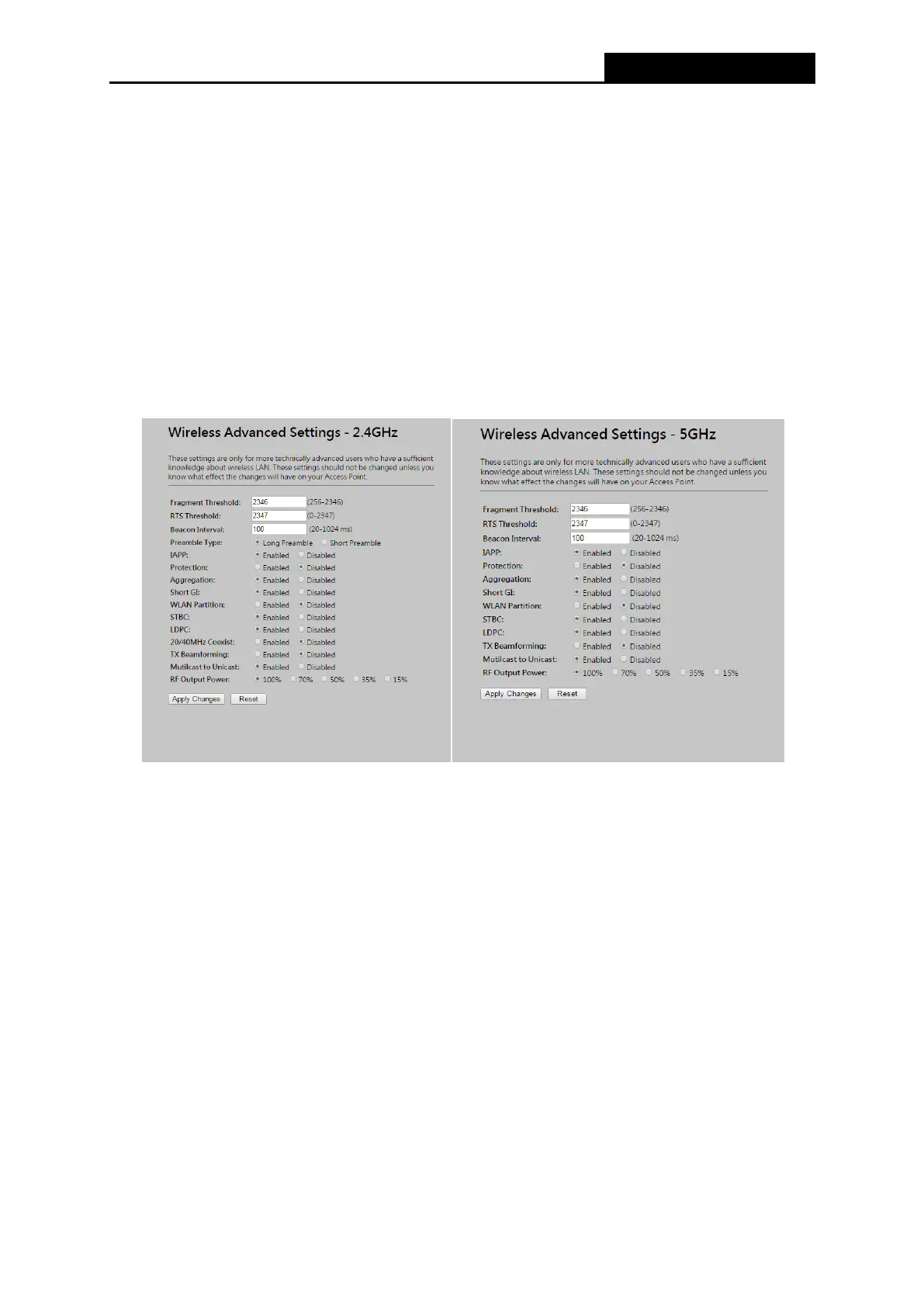 Choose menu “Wireless → Advanced Settings”, you can configure the advanced settings of